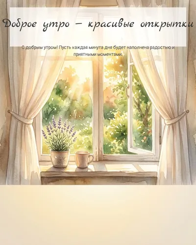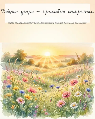 Доброе утро! Что может быть лучше, чем начать новый день с улыбки и заряда позитива? Наша коллекция красивых открыток «Доброе утро» создана специально для того, чтобы вы могли отправить частичку тепла и света своим близким, друзьям или коллегам. Выбирайте из множества ярких и нежных изображений, будь то чашка ароматного кофе, восхитительный рассвет, милые животные или вдохновляющие цитаты. Каждая открытка наполнена добротой и призвана подарить хорошее настроение на весь день. Делитесь радостью и помогайте другим встречать утро с улыбкой!
