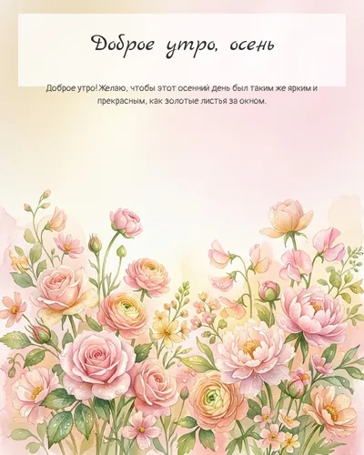 Пусть каждое осеннее утро дарит вам ощущение нежности и предвкушение чего-то доброго. Удачного дня!