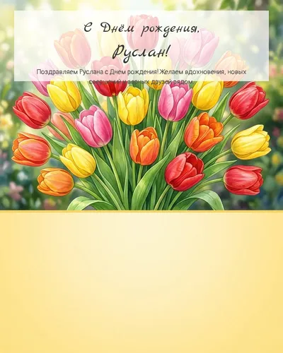 С Днем рождения, Руслан! Пусть в твоей жизни всегда будет место для чуда, а каждый день будет наполнен смыслом и светом.