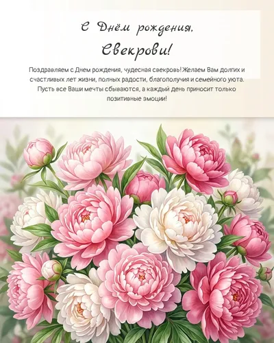В этот особенный день, когда мы отмечаем рождение человека, подарившего миру нашего любимого человека, хочется выразить самые теплые и искренние чувства. Свекровь — это не просто мама нашего мужа или жены, это человек, который становится частью нашей семьи, опорой, советчиком, а порой и лучшей подругой. Выбирая открытку для поздравления свекрови, мы хотим вложить в нее всю нашу любовь, уважение и благодарность за ее мудрость, заботу и тепло. Пусть каждая открытка, выбранная с душой, станет символом нашей признательности и подарит ей незабываемые моменты радости в этот светлый праздник.